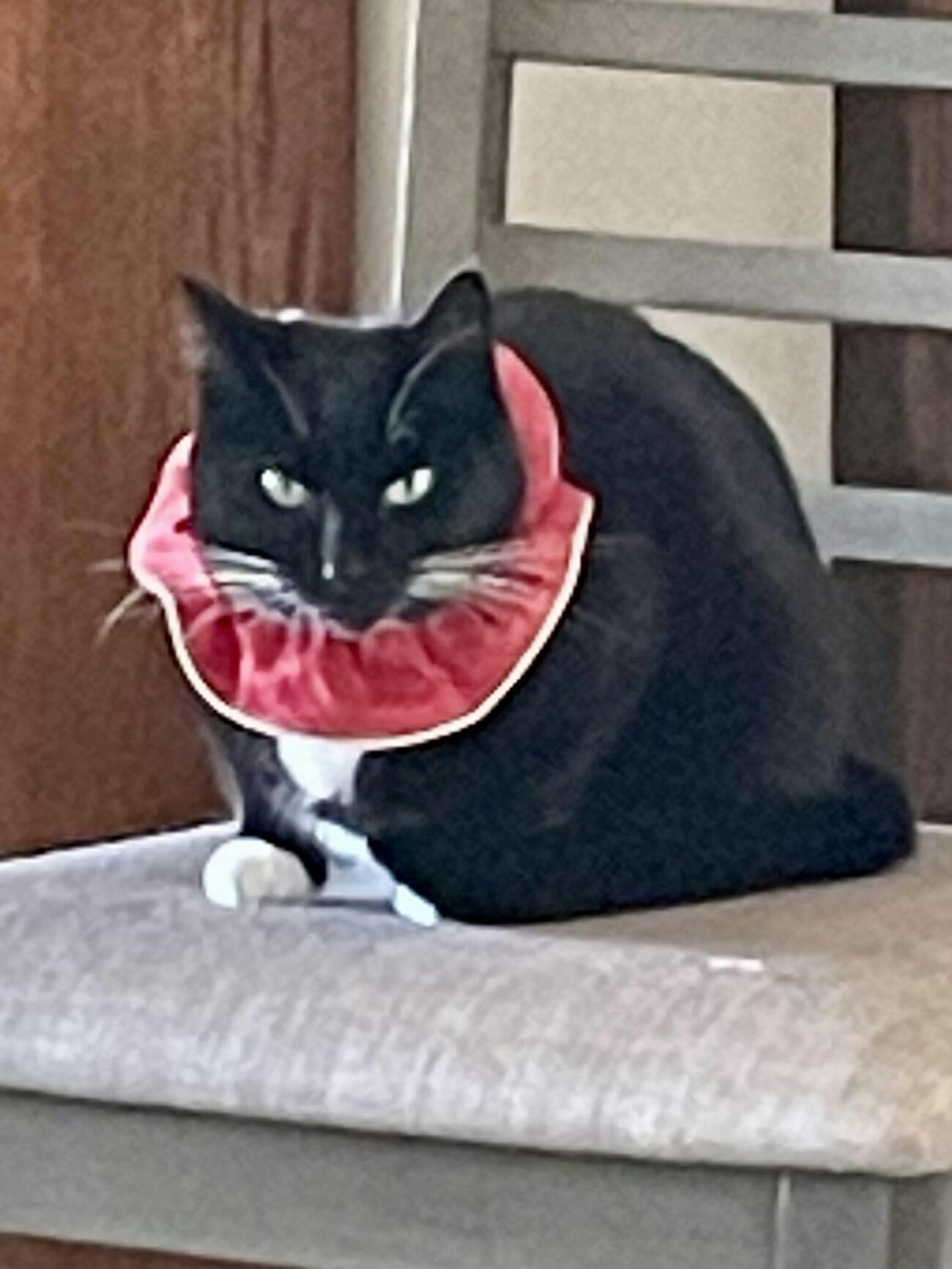 Before my cat Lady got her birdbesafe collar, she brought me a bird almost everyday. Now that she’s wearing her stylish red collar—so becoming on a black cat—she has brought zero gifts. Thank goodness! She allows me to put the collar on before she goes out, and I make a fuss about how beautiful and stylish it looks. Everyone, including the birds, is much happier.